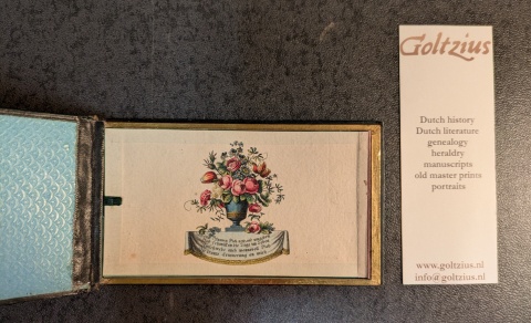 OLIE; WEYTINGH --- Album amicorum in de vorm van een oblong doosje met 13 losse blaadjes met teksten en tekeningen, van C.B. Olie. Amsterdam, 1837-1840.