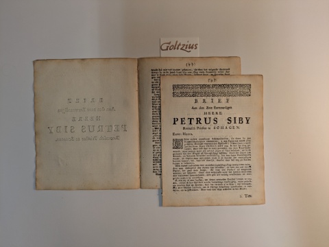 --- Brief aan den zeer eerwaardigen heere Petrus Siby, Roomsch priester te Schagen. d.d. Amsterdam, 14-2-1741, z. pl., [1741].