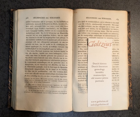 Leeuwarden, G.T.N. Suringar, 1834-1856, three parts in four volumes, part I (1834) 496 pages with 22 pages bijlagen (annexes), part II (1838) vi+ 659 pages and 20 pages bijlagen (annexes), part III-I (1855) 536 pages and 26 pages bijlagen (annexes), part III-II (1656) viii+537-784+ 46 pages bijvoegsel en verbeteringen (annex and corrections), pages 27-30 bijlagen (annexes) and 152 pages algemeen register. Half linnen binding, spines loose of three volumes. Ex library of the Stedelijk Gymnasium in Leyden. Complete set with the maps and the register. First edition.