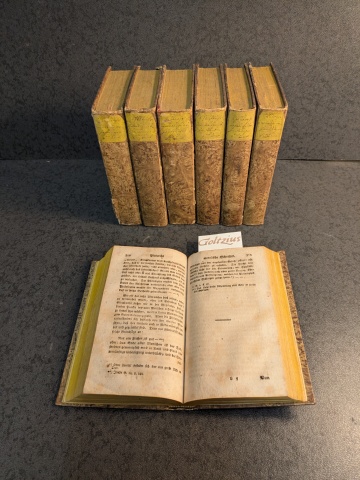 Frankfurt am Manu, J.C. Hermann, 1786-1800, volumes 3-9 (vols 1-2 missing), contemporary hardcover paste paper binding, translation of Plutarchs works in German. Little rust spots on the pages., 483, 633, 600, 772, 655, 508, 458 pages.