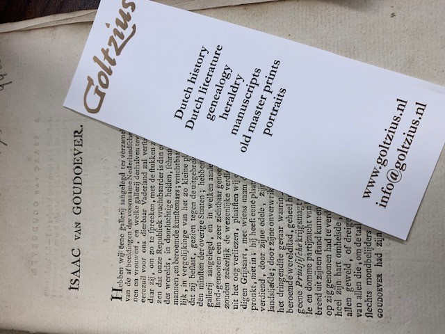 16 pages, no binding, with loose engraved portrait dating from 1783 of Jsaac van Goudoever by J. Wijsman (Jacobus Wijsman (1768-1827), Dutch engraver), engraving/etching on hand laid (verge) paper, sheet size: 15,3 x 23,4 cm. (6 x 9,2 inch). Image size: 10,5 x 12,7 cm. (4,1 x 5 inch), inkstain on right corner of portrait and in the text, Isaac van Goudoever (before 20 October 1720 in Amersfoort – 11 September 1793 in Amsterdam) was a colonel of the Amsterdam schutterij who in April 1787 played a leading role in the conversion of the Amsterdam vroedschap to the cause of the Patriot faction in the Patriottentijd. Text possibly taken from Vaderlandsche chocolaad (1796).