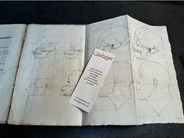 Paris: Jansen and The Hague: van Cleef, 1791. 27x22cm, 4o,168 pp. titlepage with vignette showing two putti with heads, pages clean, only minor waterstain on bottom margin, hardcover with blue paper binding, soiled and damaged front and back, spine gone, endpaper loose, all XI folded plates are in place, engraved by Mariage after P. Camper, second plate 11 most likely added from the Dutch version, engraved by H. Vinkeles 1781 and after P.C. 1780. Pierre de Camper (1722-1789) was a professor of medicine, surgery and anatomy in Amsterdam. ‘Lectures on the methods of representing the passions in the human face, and on other aspects of medicine and the arts.’ -Garrison-Morton 6604.91 (Dutch edition). ‘This work on physiognomy includes Camper's description of his craniometrical methods. Camper is chiefly remembered for the 'facial angle' of his own invention.’ -Garrison-Morton 158 (German edition). Camper was a Dutch physician, anatomist, physiologist, midwife, zoologist, anthropologist, paleontologist and a naturalist. He was the son of a local well-to-do minister, who made his fortune in the East Indies. As a brilliant alumnus, he studied in the University of Leiden, earning degrees in both medicine and philosophy at the age of 24. He was offered sundry professorships, being first named professor of philosophy, anatomy and surgery in 1750 at the University of Franeker. First French translation of this important work.