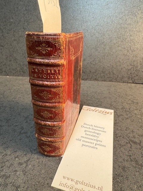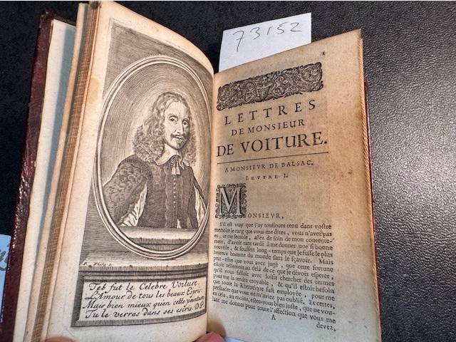 after Philippe de Champagne), beautiful leather tooled binding, ornaments and title on spine, gilt tooling on front and back, tooled edges of front and back, gilt edges, written by Voiture, Vincent [1598-1648], Vincent Voiture was a French poet and writer of prose. During his lifetime he did not publish any works in book form. After his death that his verses and prose letters were the delight of courtiers and were copied and admired. Willems Nr. 870. Scarce.