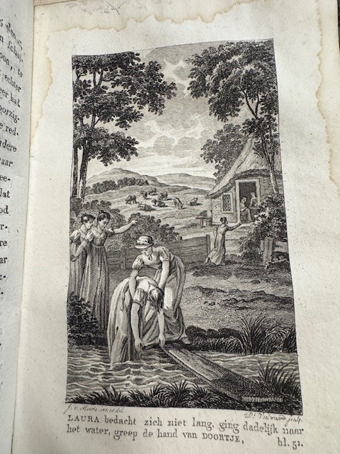Amsterdam M.H.Heimig 1823, 1st edition, (4)+242 +(1)pp. engraved titlepage with vignette by J. van Meurs/D. Veelwaard, from the library of Nederlandsche Schoolmuseum Amsterdam (several library stamps on titlepage and elsewhere), engraved plates by J. van Meurs/D. Veelwaard, some waterstaining to the plates, original publishers binding, spine loose at one side, library stamps on front