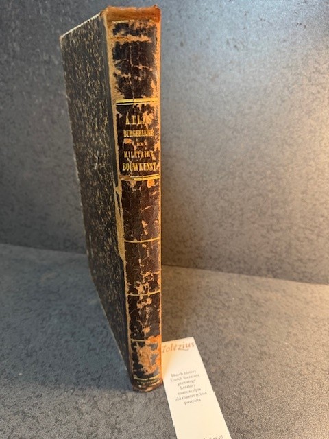 Breda, Koninklijke Militaire Akademie, 1863, 3rd improved ed., plate-vol. only, 13 text-pag. (‘verklaring der platen’) and 63 lithographed plates with military architectural illustrations by Franciscus Josephus Ensinck (1806 – 1883). Half leather bi9nding, gilt title on spine, some wear and tear to binding. Large folio. Attractive atlas belonging to te military textbooks on watermanagement.